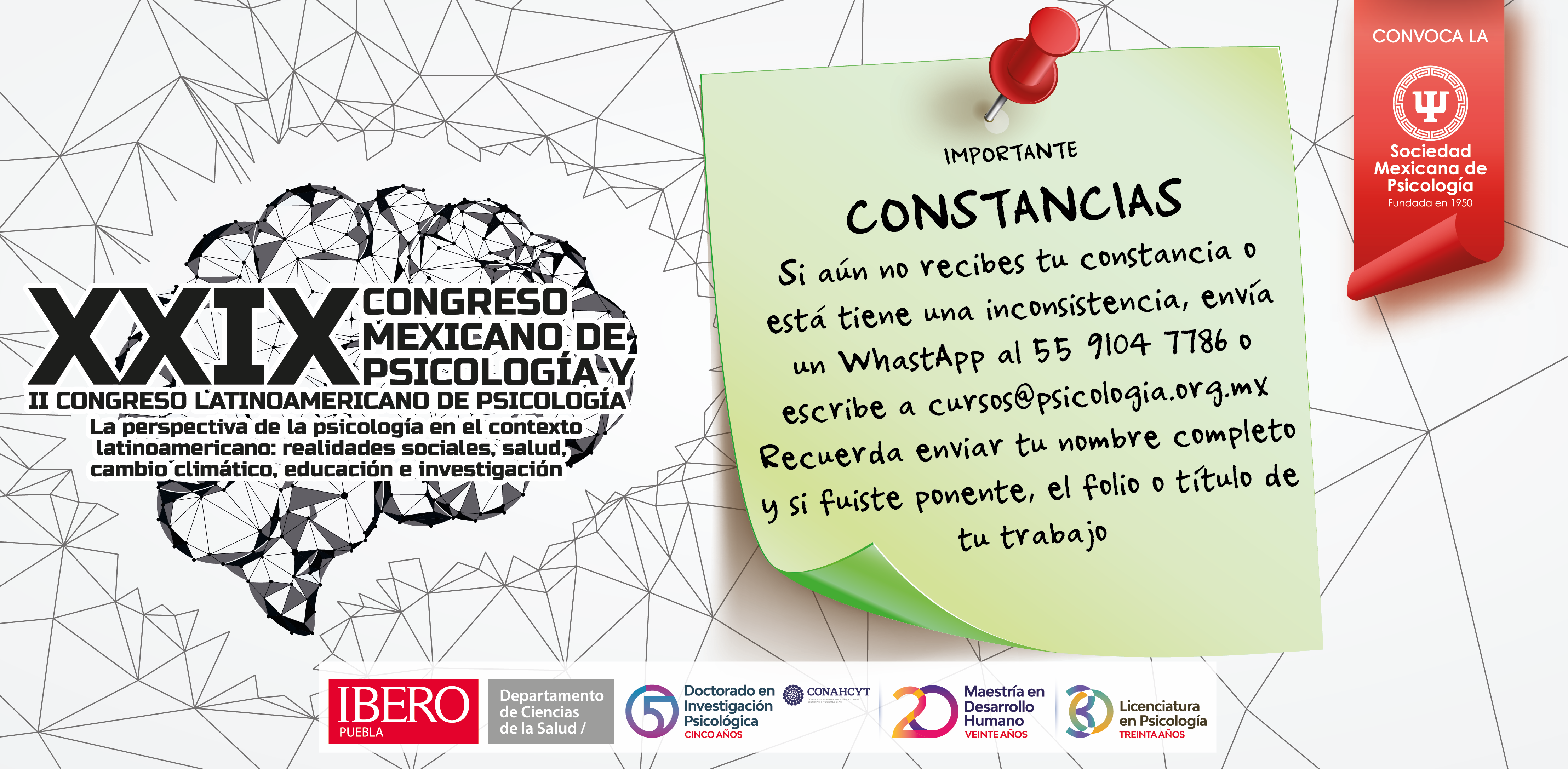 La Sociedad Mexicana de Psicología es la única responsable del proceso de inscripción al XXIX Congreso Mexicano de Psicología y II Congreso Latinoamericano de Psicología.